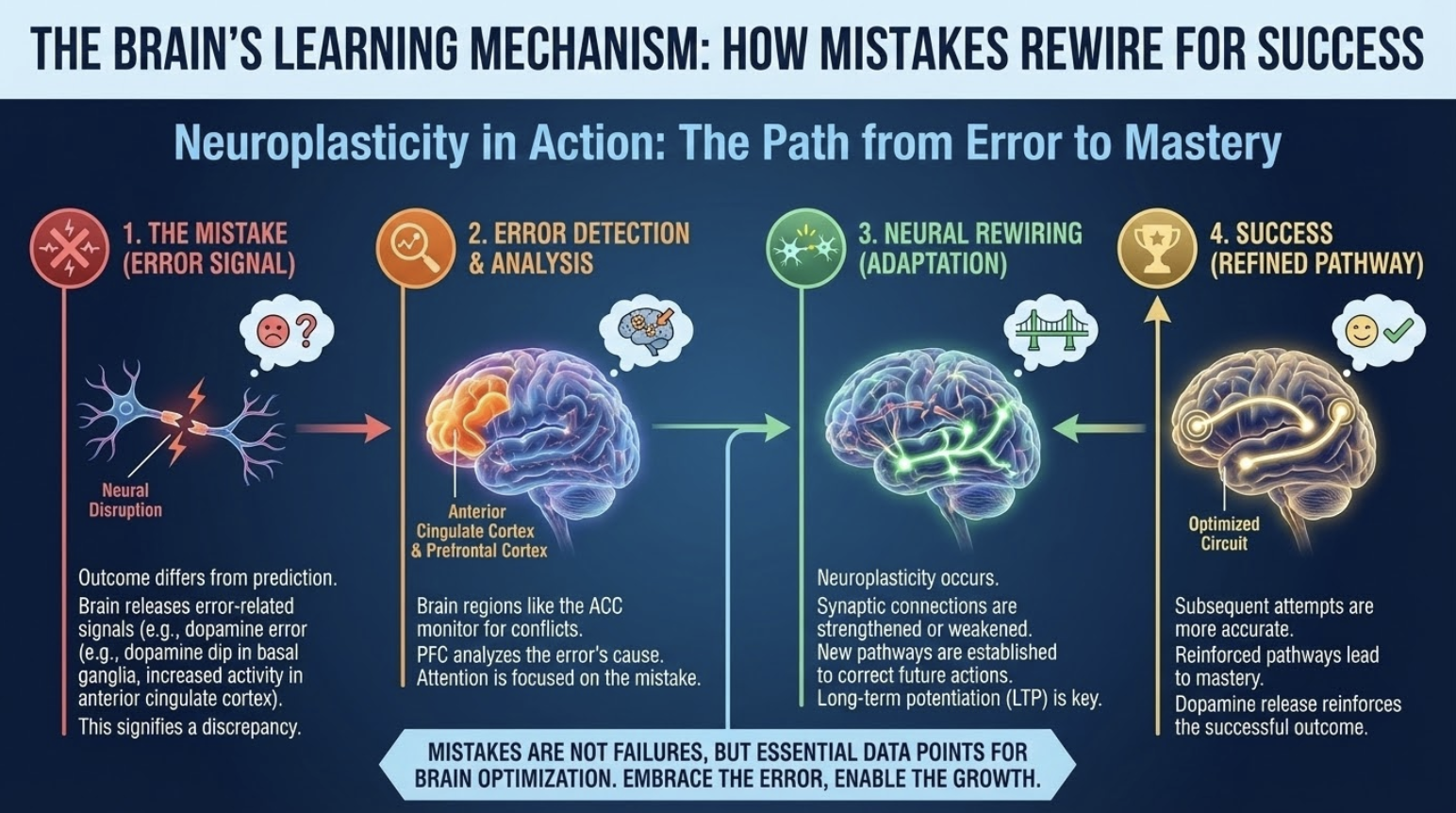 The Brain's Learning Mechanism: How Mistakes Rewire for Success